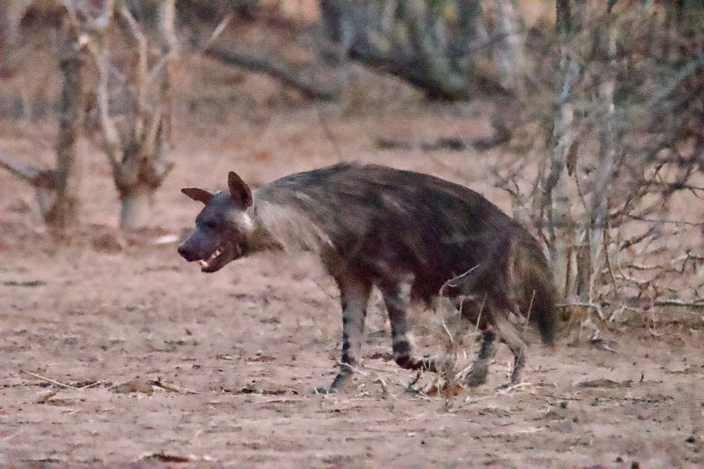 As we are heading out, we catch a glimpse of a Brown Hyena running around in the bush. Onx says they are a rare sighting in Botswana.