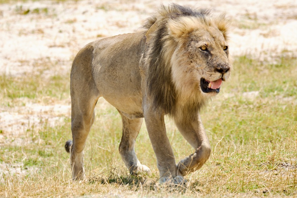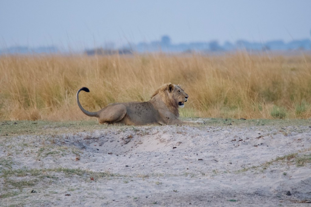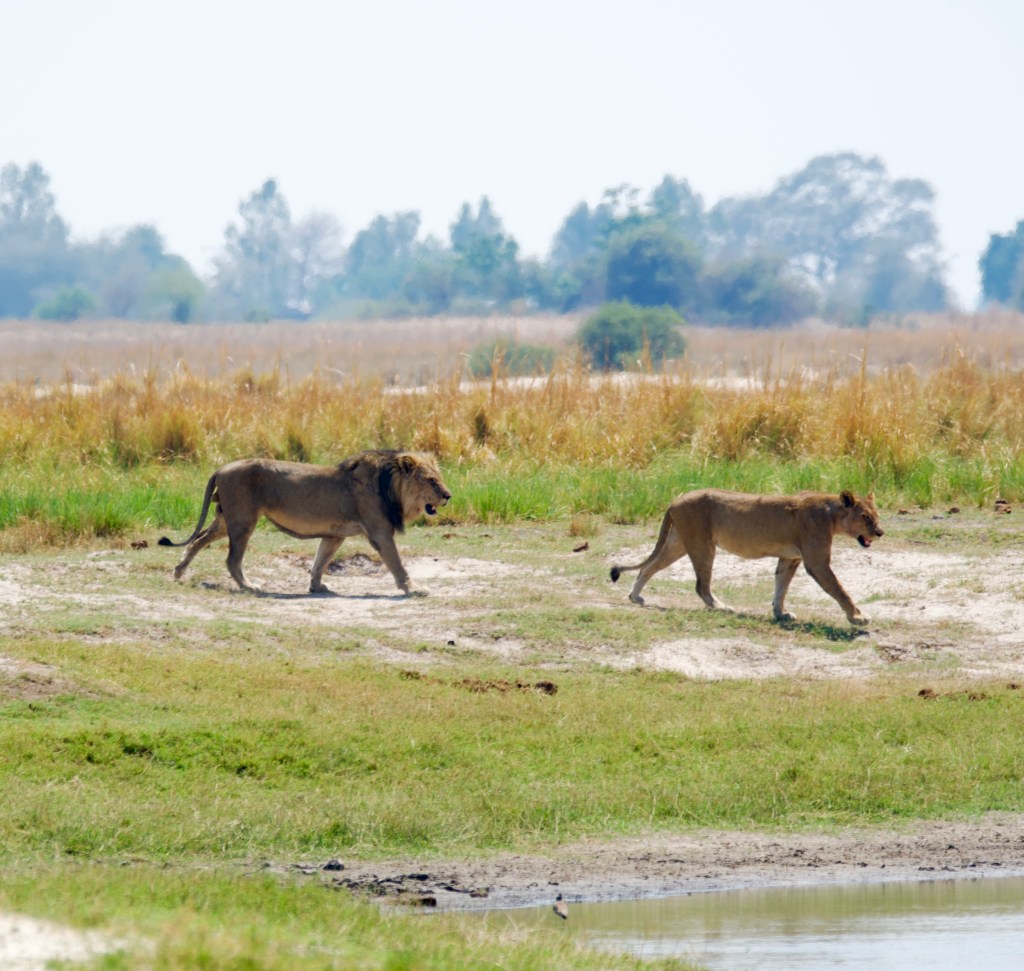 The lions begin to awaken on our first full day in Botswana. We are told there is a older male lion (Mufasa!) with female who is fighting with an interloper that is attempting to take his place in the pride. Mufasa does not allow the younger interloper to succeed. Here, Mufasa is seen walking with the female.