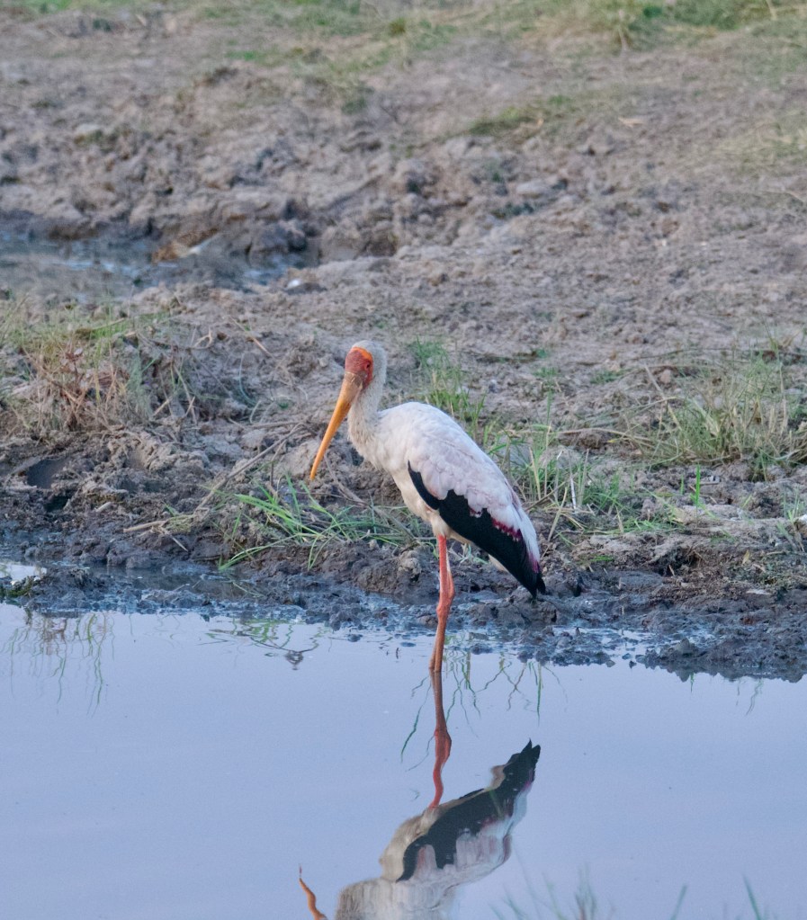 Another cool bird we see is the Yellow-billed Stork, below. (We also see many Maribou Storks, which are not as colorful as this).