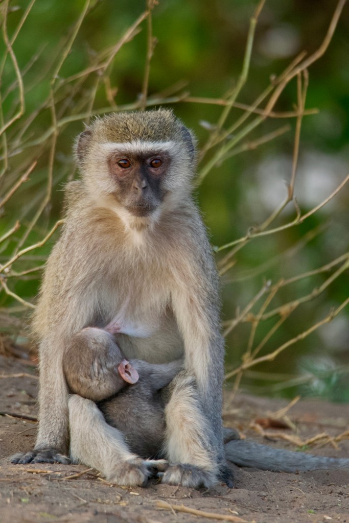 We leave for the game drive at 6:30 a.m. On our way to the Chobe River, we spot a Vervet Monkey mom with her baby. How precious and beautiful each life is.