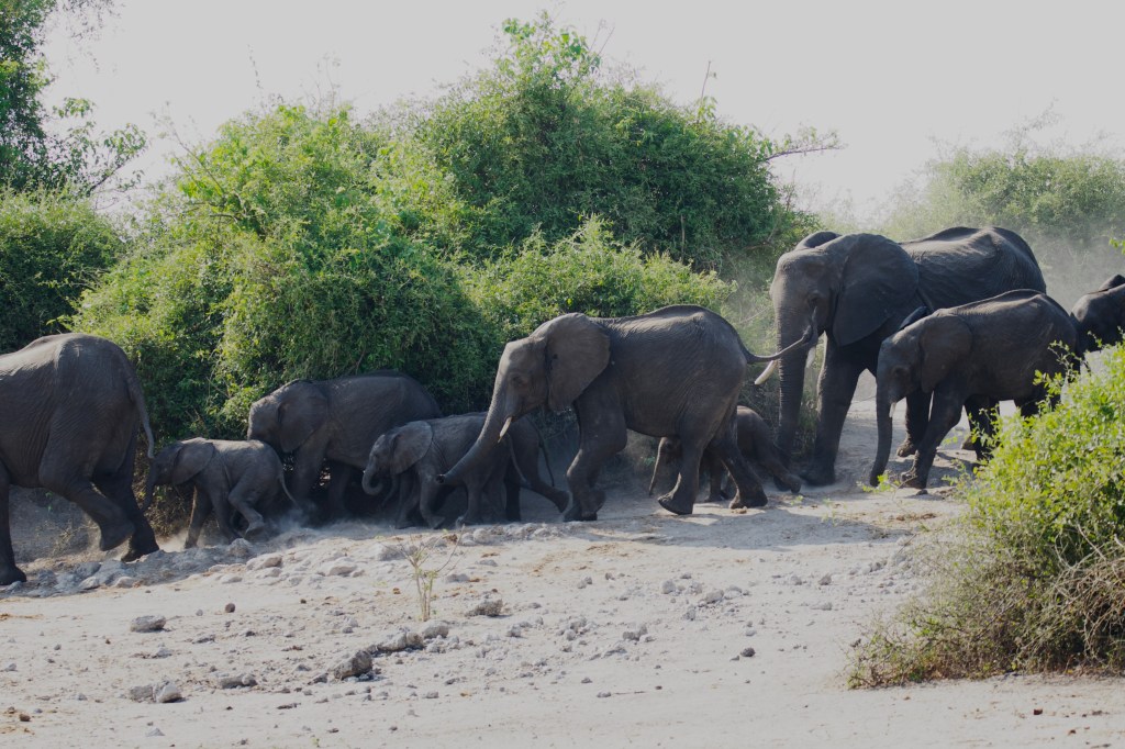 We soon witness our first large herd of elephants coming down from the savannah to the river to drink. They have young in tow, and the large adults keep a close watch on the babies, surrounding and protecting them from predators. We watch as they run down towards the river. They must be very hot and thirsty.
