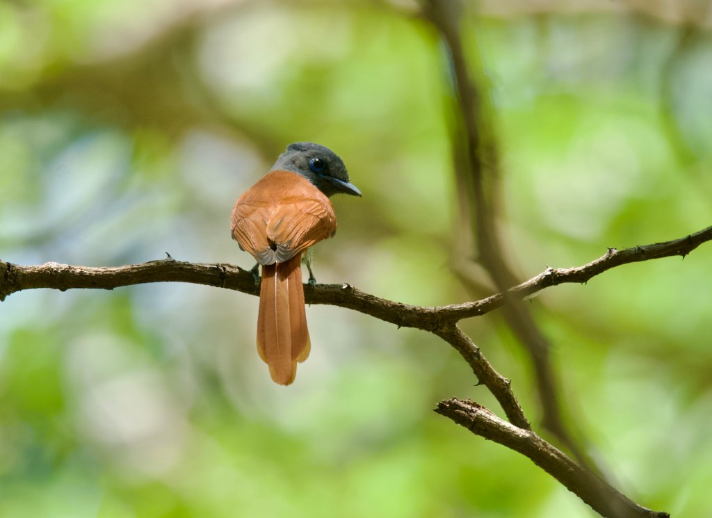 The Paradise Flycatcher is fairly common in Botswana. Nature has devised many ways for male birds to attract their mates. The female is not too far away. Notice that she doesn’t have the same stunning features as the male bird.