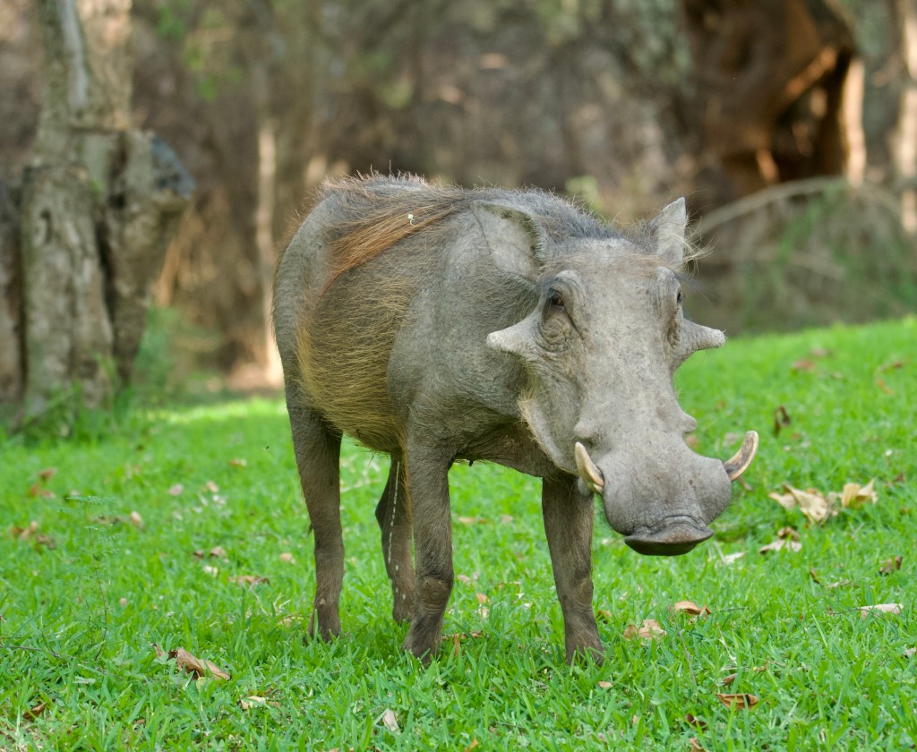 Warthogs like to hang around on the lawn in front of the Chobe Game Lodge, near to where the lions enter the property. One thing that nobody ever mentions before you go on a safari is that at the lodges, no one is allowed to walk to their room alone at night without a guide. This is because there are lions around!