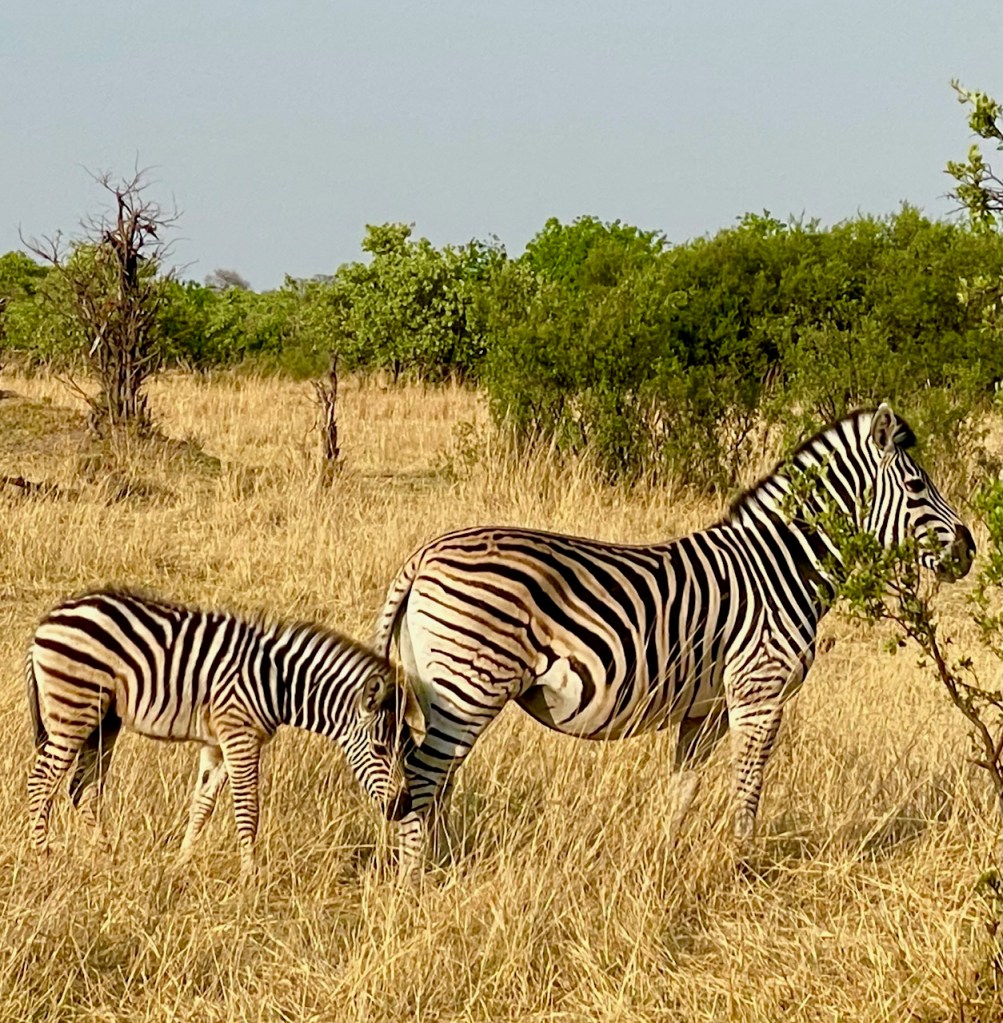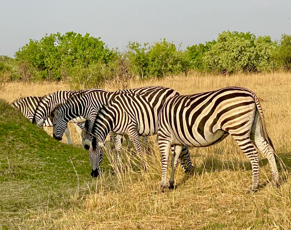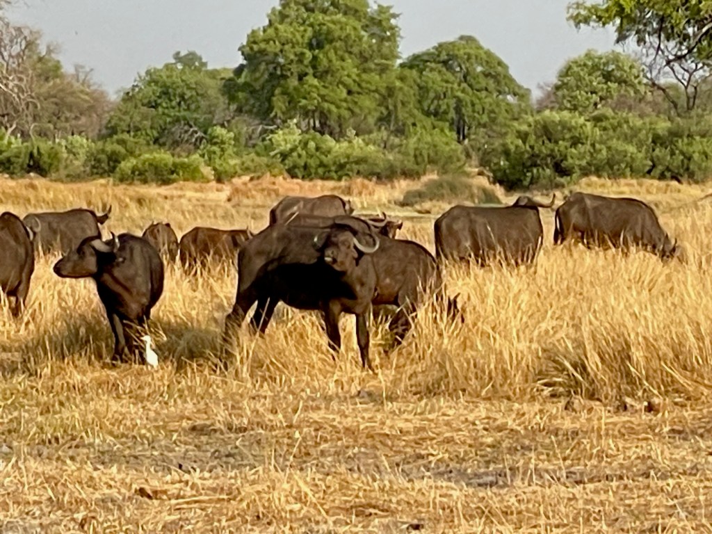 Below, we see Cape Buffalo in the same area as the zebra. I forgot to tell you in my first post, that 2-3 lions chased 80 buffalo into the Chobe River in late October (2023) and unfortunately all 80 buffalo drowned. On the other side of the Chobe River lies Namibia and so the Namibian authorities arrived to help divide up the carcasses. I am sure the lions only needed one or two buffalo for their pride, so the other 78 were available to the Namibians for food.