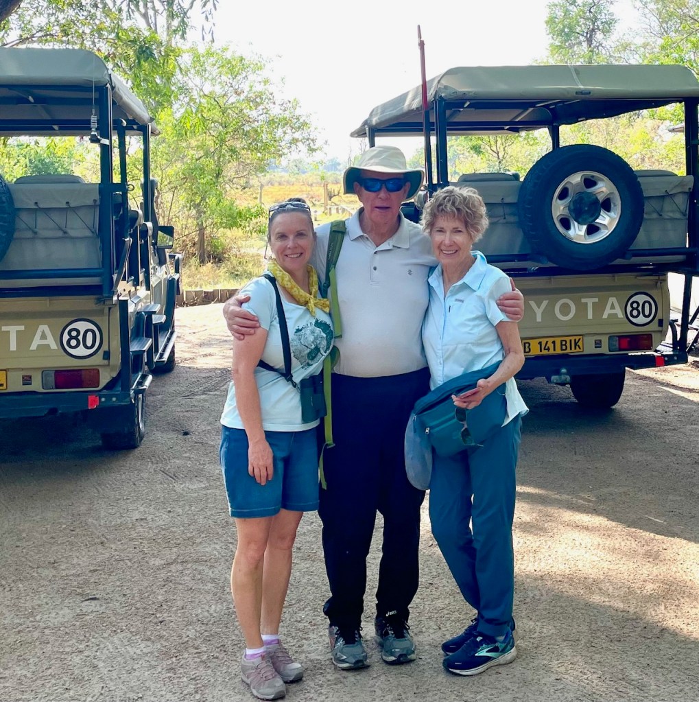 We are about to climb into the safari trucks. But first, a photo with my new Canadian friends, Bob and Judy!