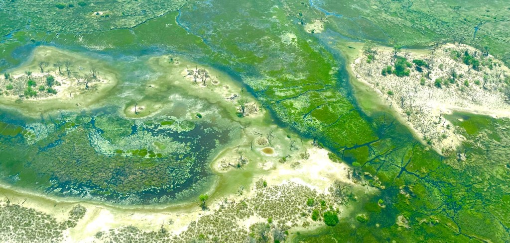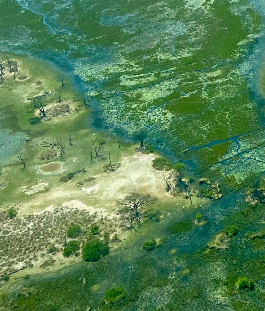 Even at the end of the dry season, it is the greenest spot on our journey. As our group flies into Maun, we witness a beautiful sight from the plane; a vast region of emerald, sapphire and sand that is the Delta. When completely flooded, these wetlands cover 1.2 million hectares or almost 300,000 square miles. (unesco.org)