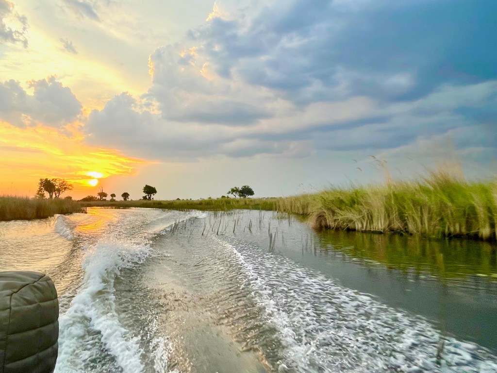 Back at the lodge, we watch the sun set over the Okavango.