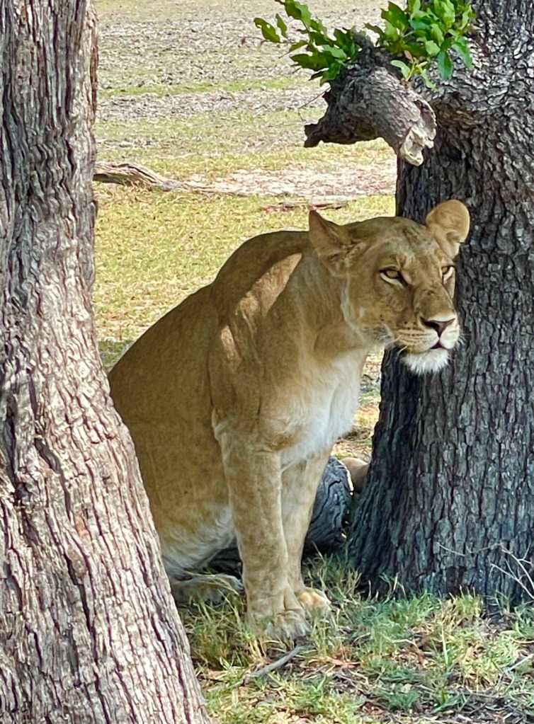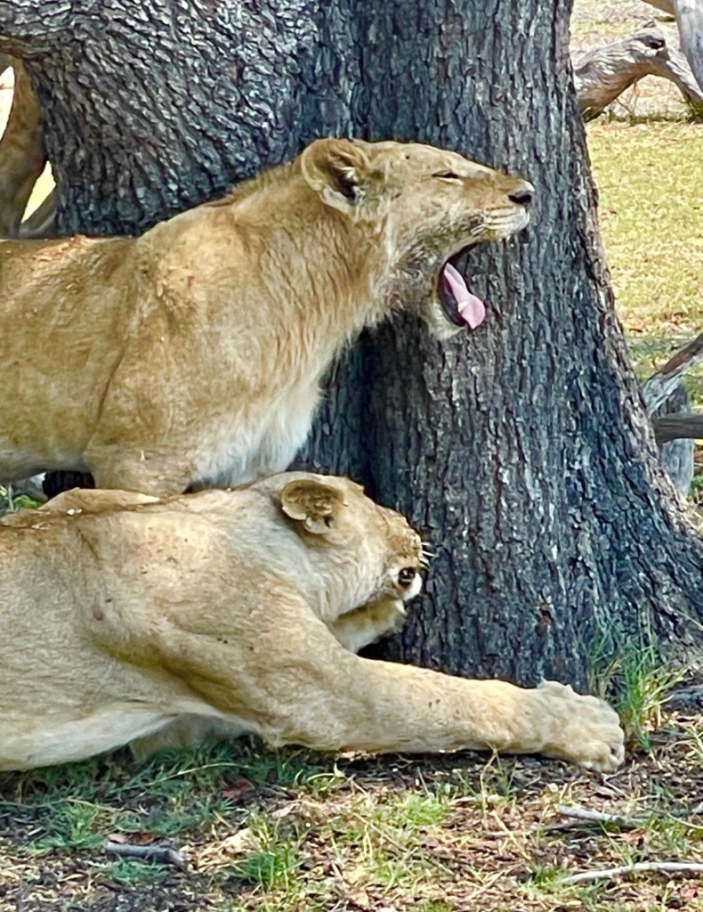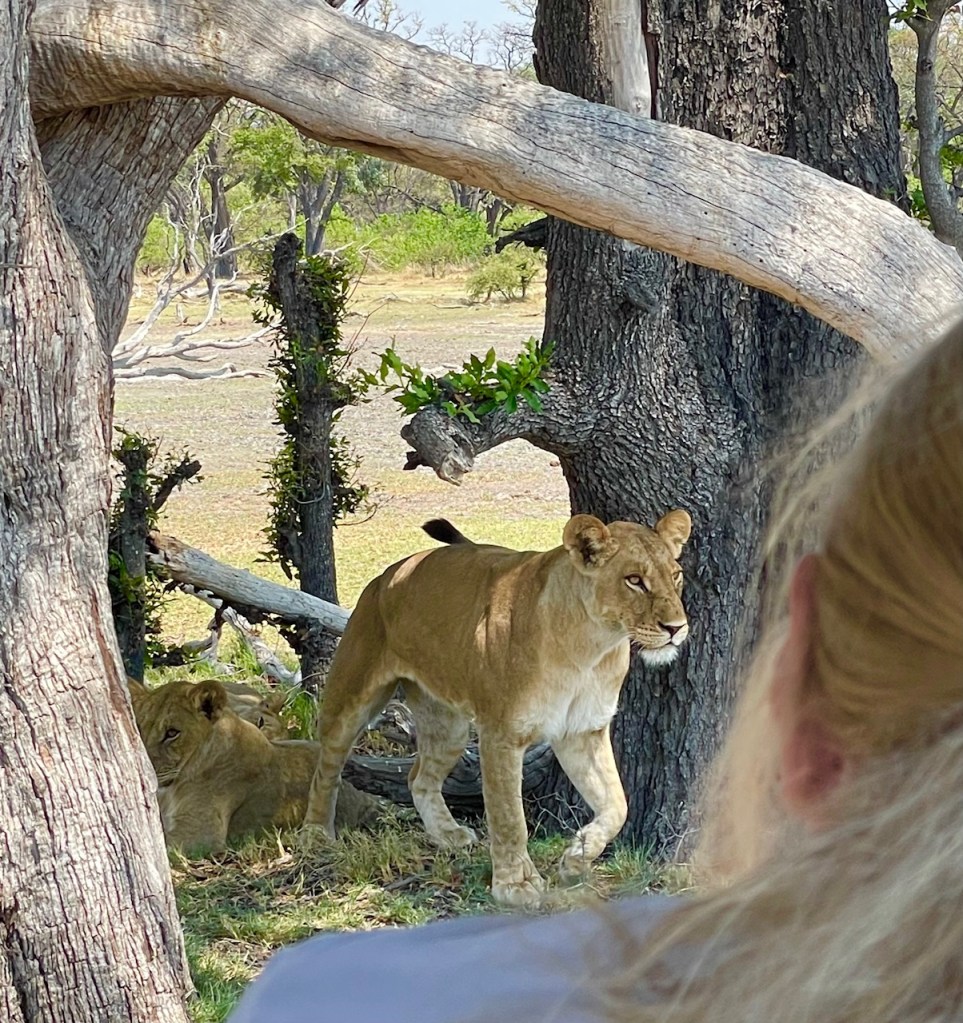 Here, we are about twenty feet away from the cats. One week earlier, a female lion walked extremely close to our vehicle and some of our group got very nervous. I think that sometimes we can have a false sense of security around animals in the wild. We have to remember that they are still wild animals and we should respect them and give them their space.