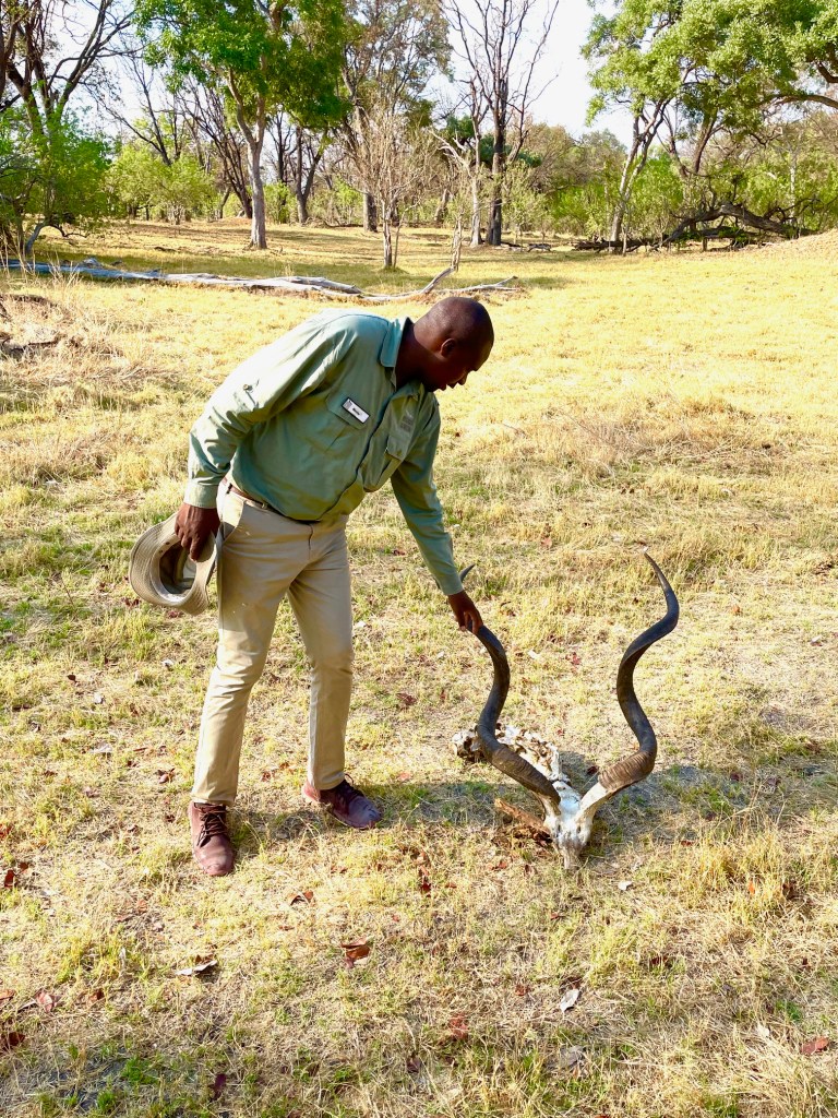 The first thing our guide wants to show us is the skull of a large, male impala. Some of us are determined to find a Leopard today, although we have been looking for two days now. So, not holding my breath.