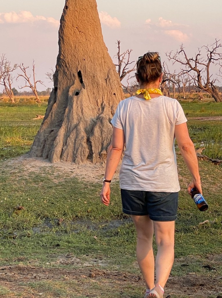In the afternoon, we stop at a beautiful spot near one of the waterways to enjoy snacks and drinks near a termite mound. There’s nothing like ending the day with good beer and a termite mound!